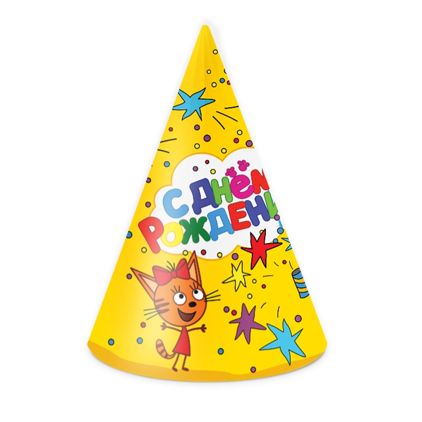 Колпак Три Кота "С днем рождения" Желтый 6шт